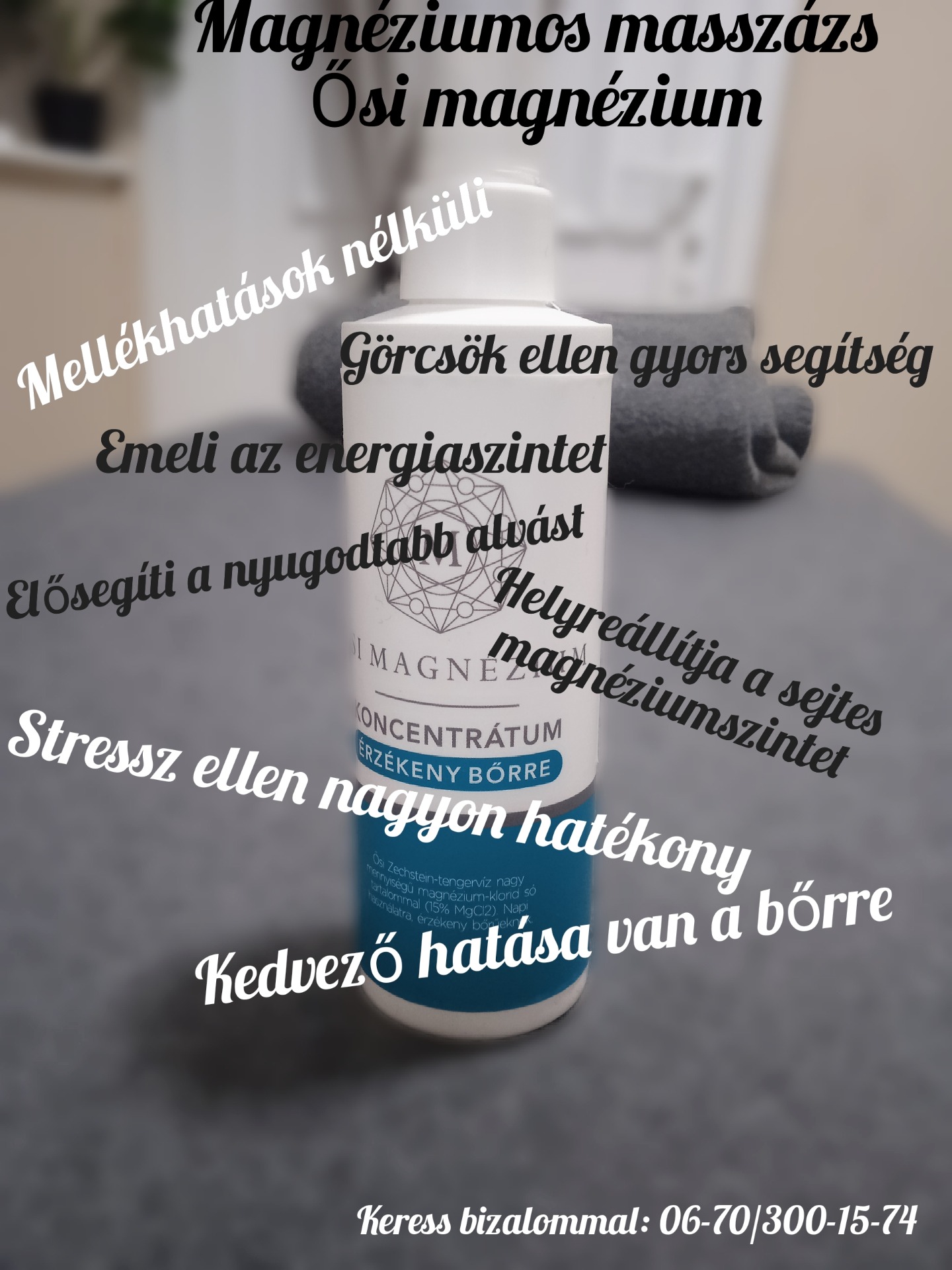 A magnéziumnak fontos szerepe van az idegrendszer, és az izomzat megfelelő működésében. Az ősi Magnéziumos masszázs ötvözi a magnézium és a masszázs gyógyító erejét. Hatékonyan szünteti meg az izomgörcsöket, és nyugtató hatással van a testre és a lélekre. Az ősi Magnézium a bőrön keresztül nagy mennyiségű magnéziumot juttat a szövetekbe, hatására a bőr selymes és puha lesz, az izomgörcsök a masszázs alatt kilazulnak, a fájdalom megszűnik.